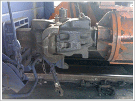 翻車機推車器由液壓馬達(dá)控制,雙側(cè)推車臂推送車輛踏面。推車器推送車輛時先低速后