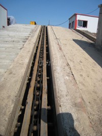 爬車機(jī)又稱高度補(bǔ)償器,是礦車自動(dòng)滑行線上為補(bǔ)償高度設(shè)置的設(shè)備。本公司開發(fā)的板鏈?zhǔn)脚儡嚈C(jī)采用高強(qiáng)度板鏈作為傳動(dòng)鏈,液壓馬達(dá)驅(qū)動(dòng),具有結(jié)構(gòu)簡(jiǎn)單、強(qiáng)度大、傳動(dòng)平穩(wěn)、爬車能力強(qiáng)、維護(hù)方便等優(yōu)點(diǎn),特別適合爬車任務(wù)繁重、爬車坡度大的工況。