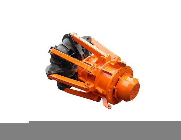 由氣動機(jī)、減速器、卷筒、制動器和繩輪機(jī)構(gòu)組成。懸吊抓斗的鋼絲繩一端固定在臂桿上,另一端經(jīng)動滑輪引入臂桿兩端的定滑輪,并通過機(jī)架導(dǎo)向輪纏至卷筒。司機(jī)控制氣閥,氣動機(jī)帶動卷筒正轉(zhuǎn)或反轉(zhuǎn)以升降抓斗。制動器與氣動機(jī)同步動作,當(dāng)氣動機(jī)經(jīng)操縱閥引入壓氣時,同時接通制動閥氣缸松開制動帶,卷筒開始轉(zhuǎn)動。反之,當(dāng)氣動機(jī)停止工作時,制動帶借彈簧張力張緊而制動。除繩輪機(jī)構(gòu)外,整個提升機(jī)構(gòu)安裝在回轉(zhuǎn)盤以上的機(jī)架上,并設(shè)有防水保護(hù)罩。