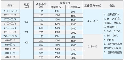 我公司生產(chǎn)各種礦用搖臺(tái),液壓搖臺(tái),手動(dòng)電液搖臺(tái)。搖臺(tái)指罐籠裝卸車時(shí)與井口、馬頭門處軌道聯(lián)結(jié)用的活動(dòng)平臺(tái),多用于礦山工程和石油開(kāi)采施工中。搖臺(tái)為一段可擺動(dòng)的軌道,其一端繞固定軸擺動(dòng),另一端當(dāng)罐籠停好后搖尖搭接在罐籠邊緣的導(dǎo)軌襯上,搖臺(tái)連接了罐內(nèi)與車場(chǎng)中的軌道,便于礦車進(jìn)出罐籠。當(dāng)搖臺(tái)抬起時(shí),搖臺(tái)上最突出部的外形與罐籠間留有足夠的安全間隙。搖尖的前端,工作時(shí)與罐內(nèi)導(dǎo)軌襯搭接,搖尖鉸接在搖臂上,可以自由轉(zhuǎn)動(dòng)一定的角度,搖尖的尾部設(shè)有配重,使其前部經(jīng)常處于抬起狀態(tài).當(dāng)由于搖臺(tái)放下出現(xiàn)事故后,罐籠通過(guò)時(shí),搖尖頭部被撞向下旋轉(zhuǎn),則罐籠安全通過(guò).搖尖和導(dǎo)軌襯的結(jié)構(gòu)保證了搖臺(tái)與罐籠搭接時(shí),側(cè)向能可靠定位,從而保證罐籠內(nèi)外軌道不會(huì)錯(cuò)位,避免發(fā)生礦車掉道事故。